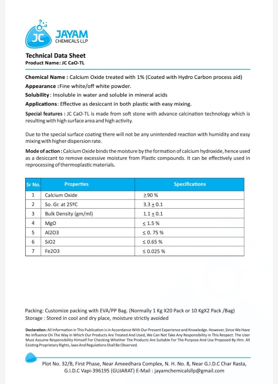 Calcium oxide, quicklime, or burnt lime, is a white, odorless powder. Don’t let its simple appearance fool you – it’s a powerhouse when it comes to moisture control.